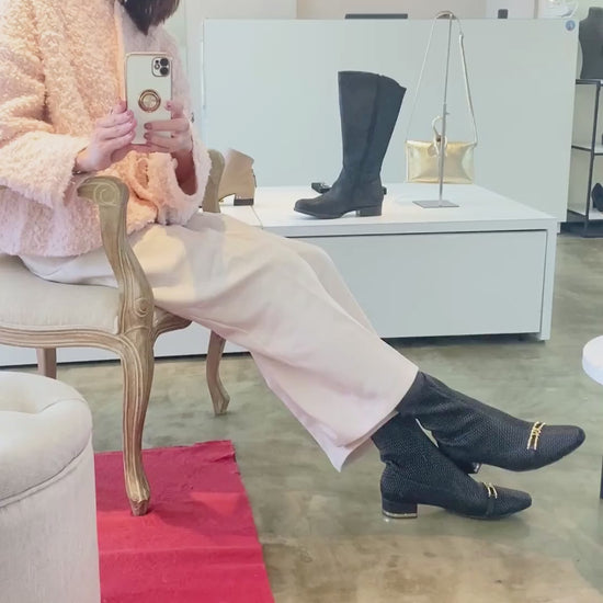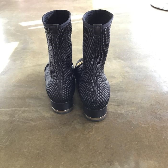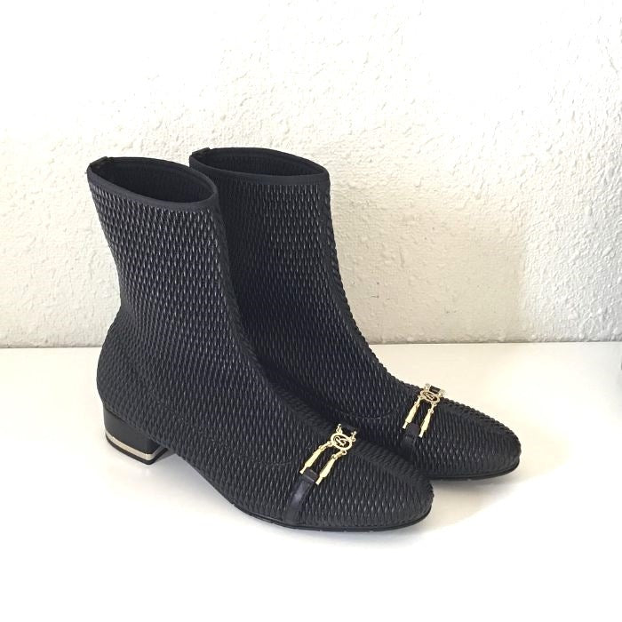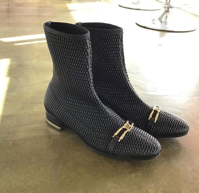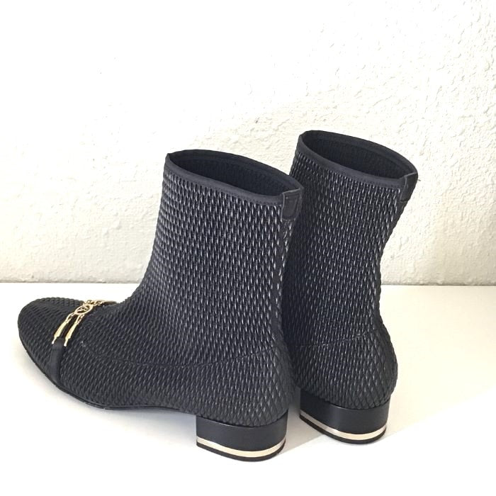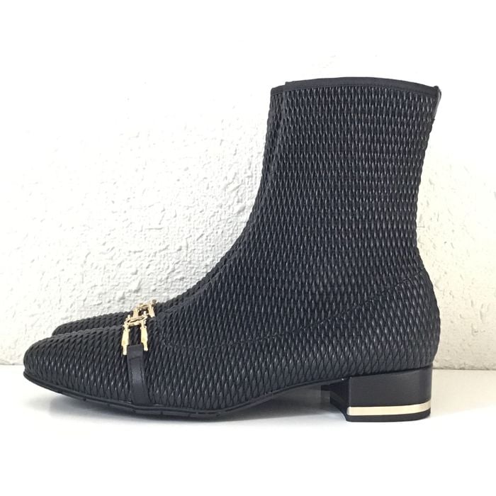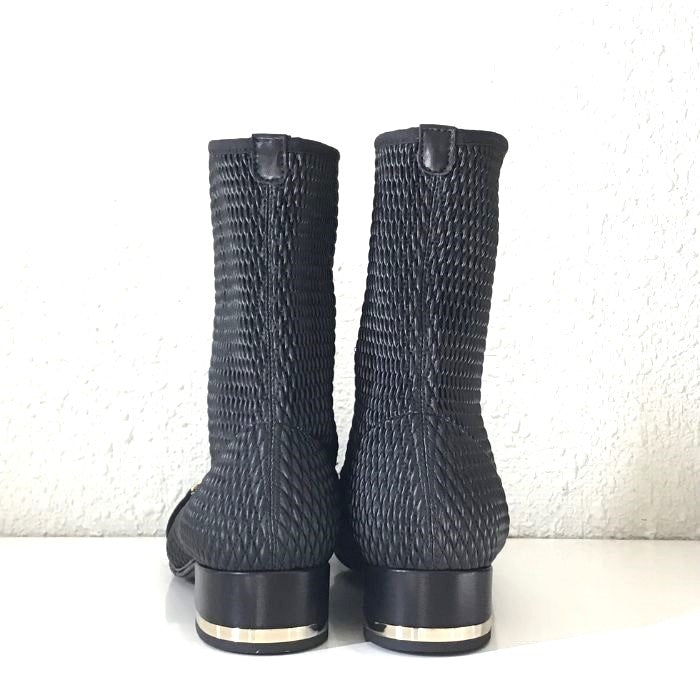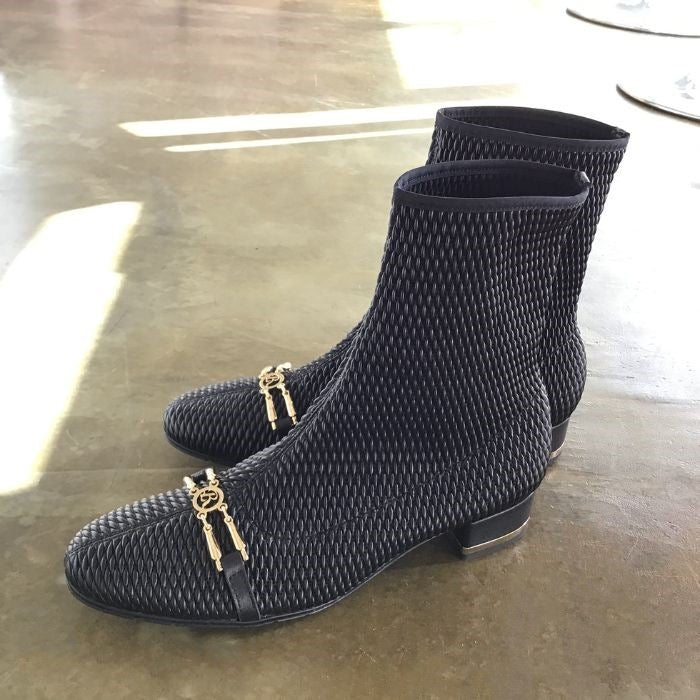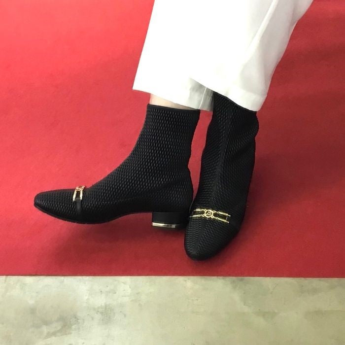 立体的な生地が個性的なエレガントショートブーツ。