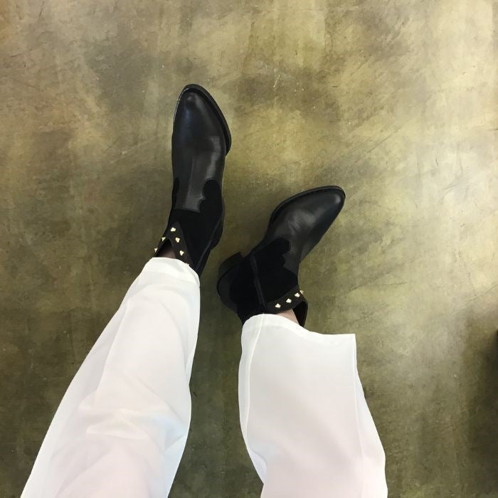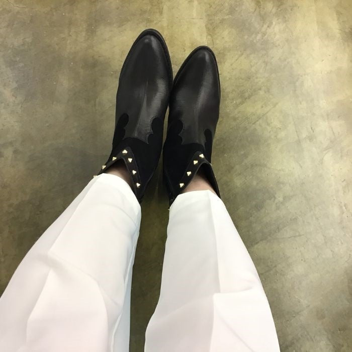 カジュアルラインのスタッズショートブーツ。
