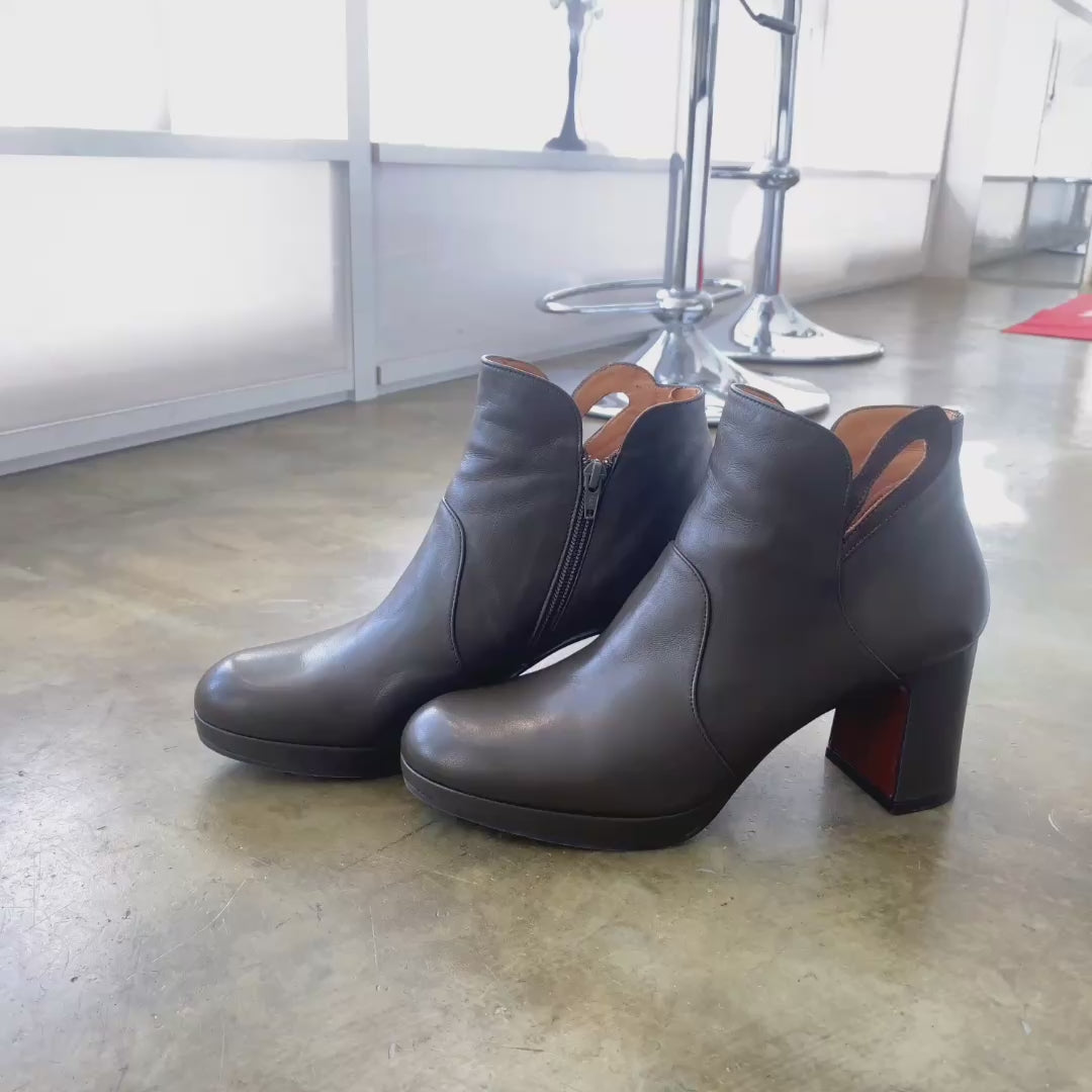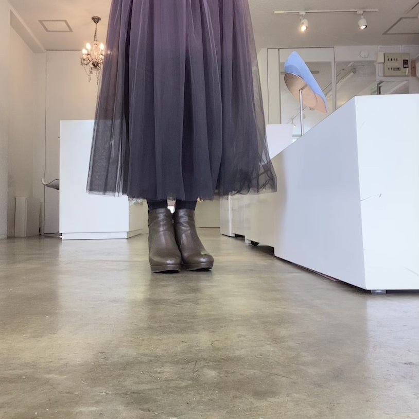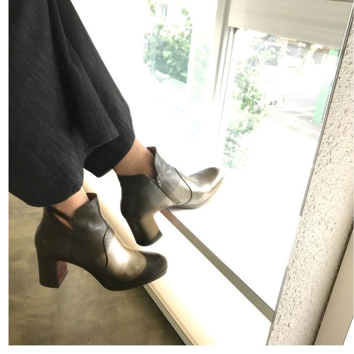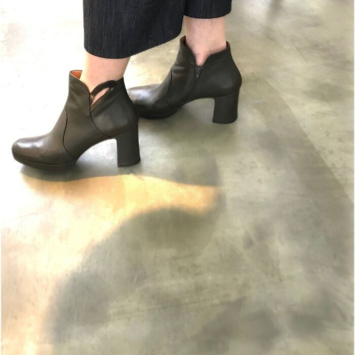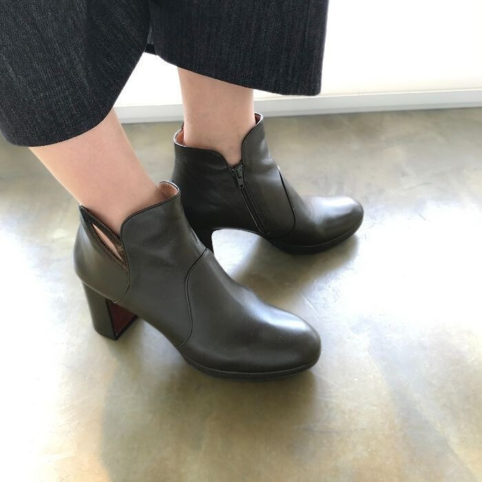 約8cmの安定感あるブロックヒールのショートブーツ。