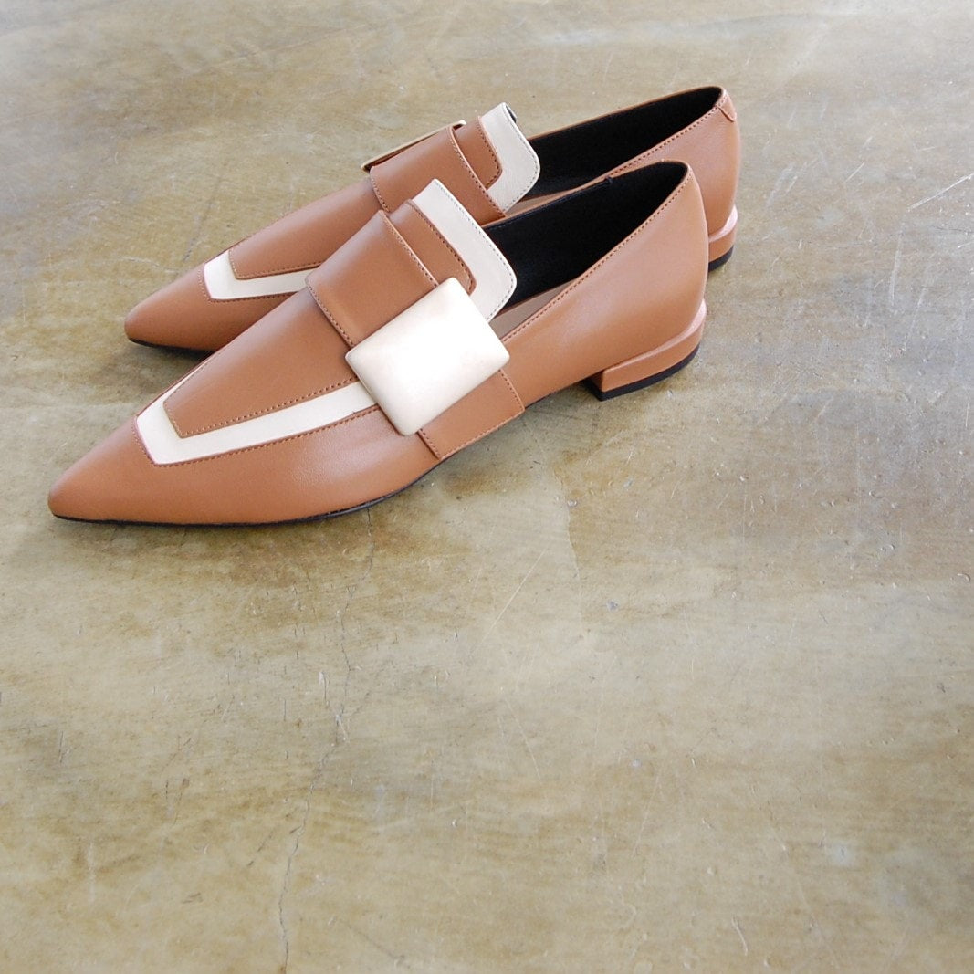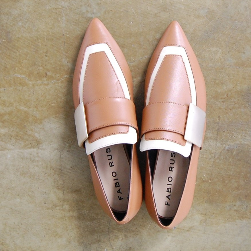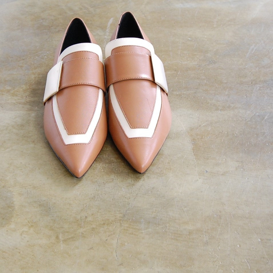 キャメル×ホワイトの色使いがお洒落なローファー。