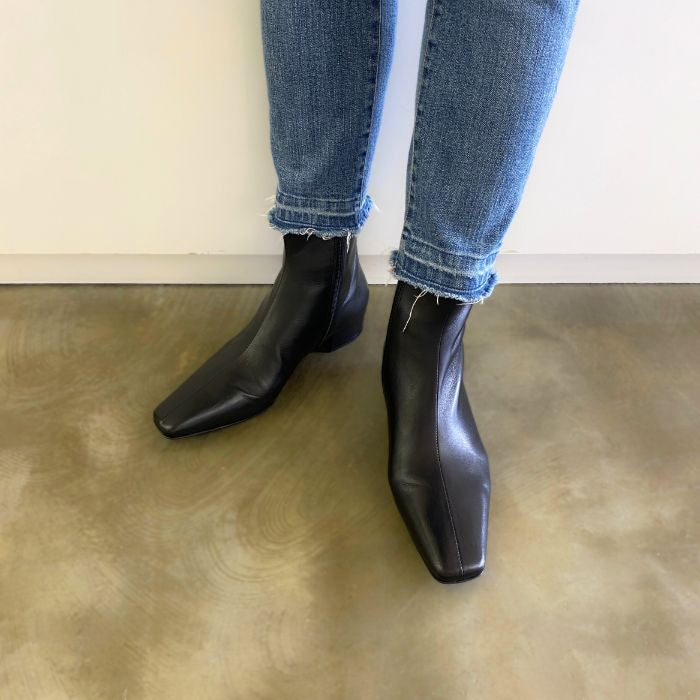 ブーツ丈のバランスが絶妙で、デニムにも綺麗めコーデにも合わせやすく、
