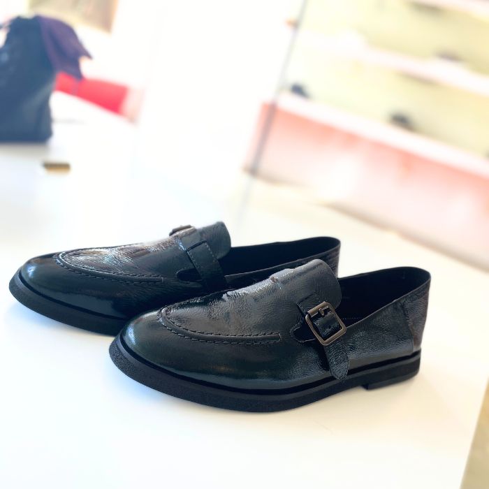 上品な艶をまとった、yuko imanishi+のバックルローファー。